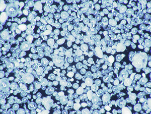 ⑥ 微粒 非常に微細な中空球状体なので充填性・混合性に優れている